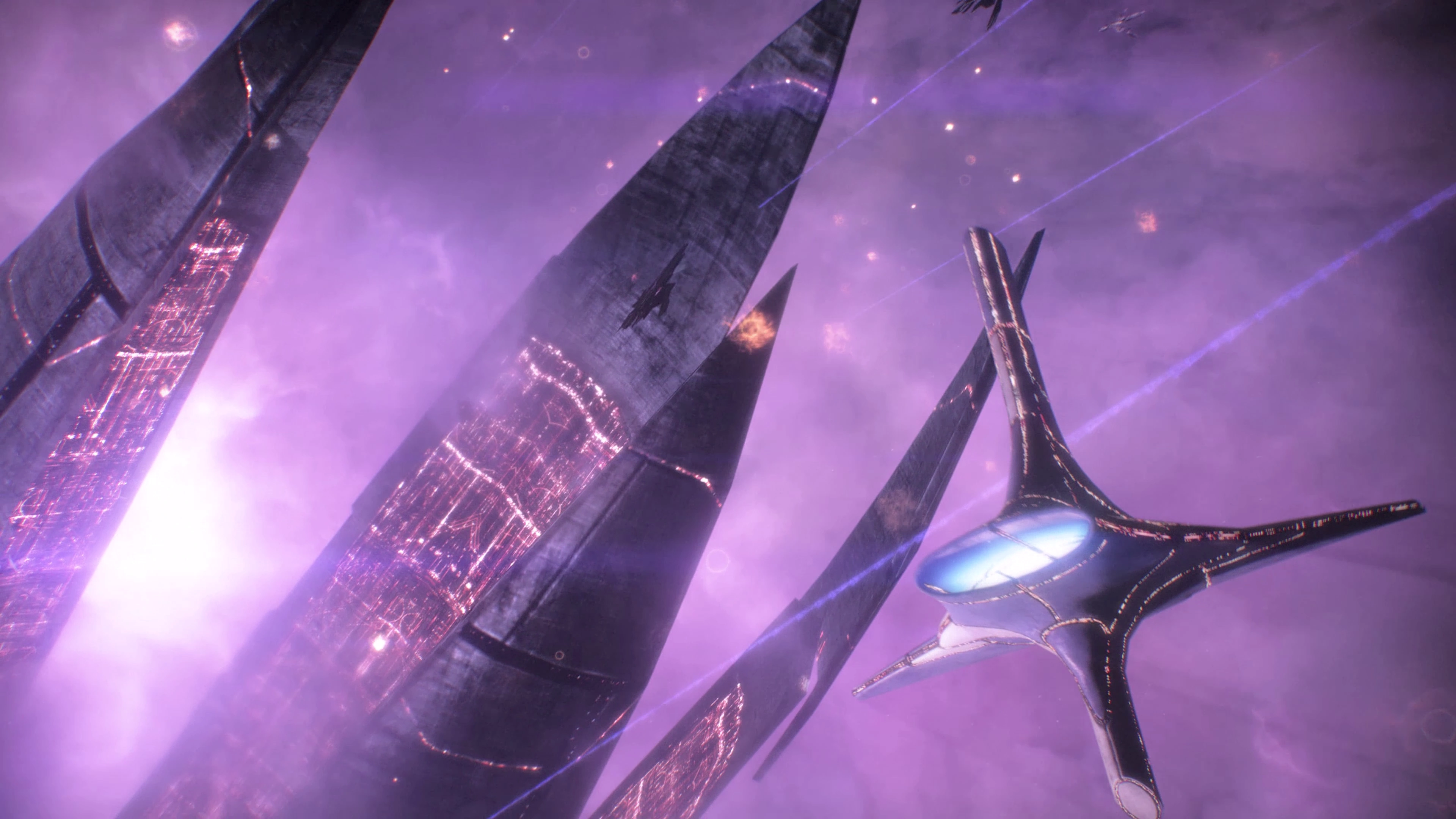 Another link in the Citadel's defensive chain is the Citadel Fleet. The fleet is a massive task force consisting mostly of turian vessels but also including ships from the other Council races. The Citadel Fleet, led by the imposing asari dreadnought Destiny Ascension, constantly patrols the space around the station. However, should any aggressor manage to break through the Citadel Fleet, reinforcements from all over the galaxy are only minutes away, due to the network of mass relays located nearby.